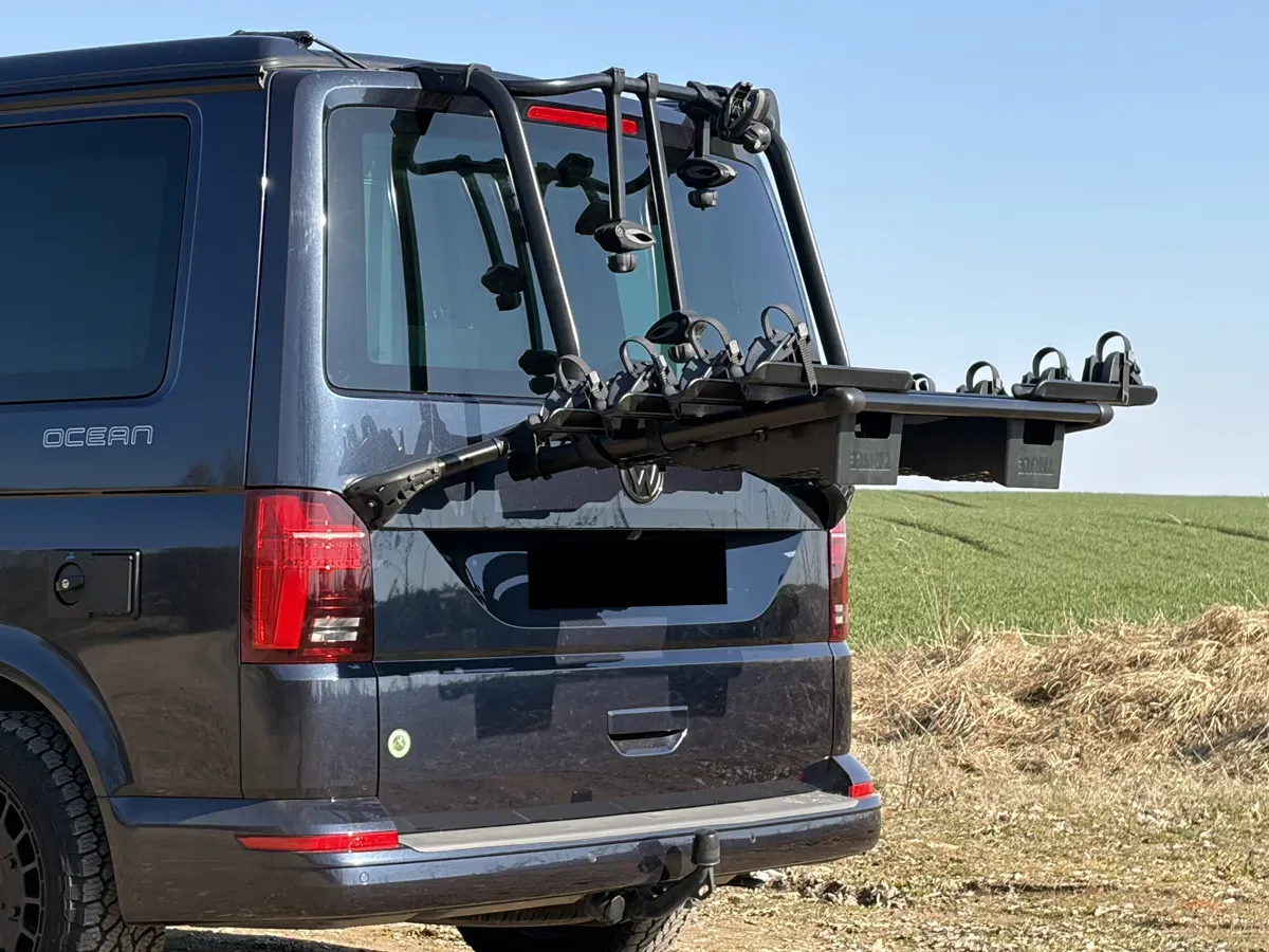 Diese Halterung ist exakt abgestimmt auf den originalen Thule WanderWay Fahrradträger des VW T5 / T6 / T6.1. Sie eignet sich optimal für Thule Levelers Auffahrkeile und kann auf Anfrage auch mit anderen Modellen verwendet werden.